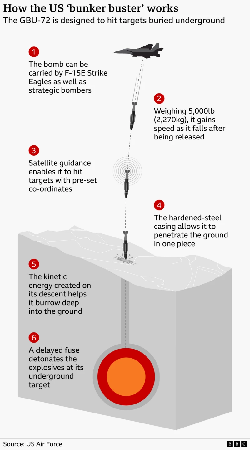 Shpërndarja e armëve në këto objektiva është e vështirë, prandaj përdorimi i llojeve të ndryshme të shkatërruesve të bunkerëve, përfshirë GBU-72 Advanced Penetrator 5,000lb që pamë të përdorur këtë javë, shkruan BBC, transmeton Gazeta Express.