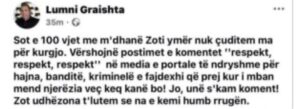 • Shkruajti për ‘’hajna, kriminel, fajdexhi’’, më pas Komandanti i Policisë në Gjakovë e fshiu postimin