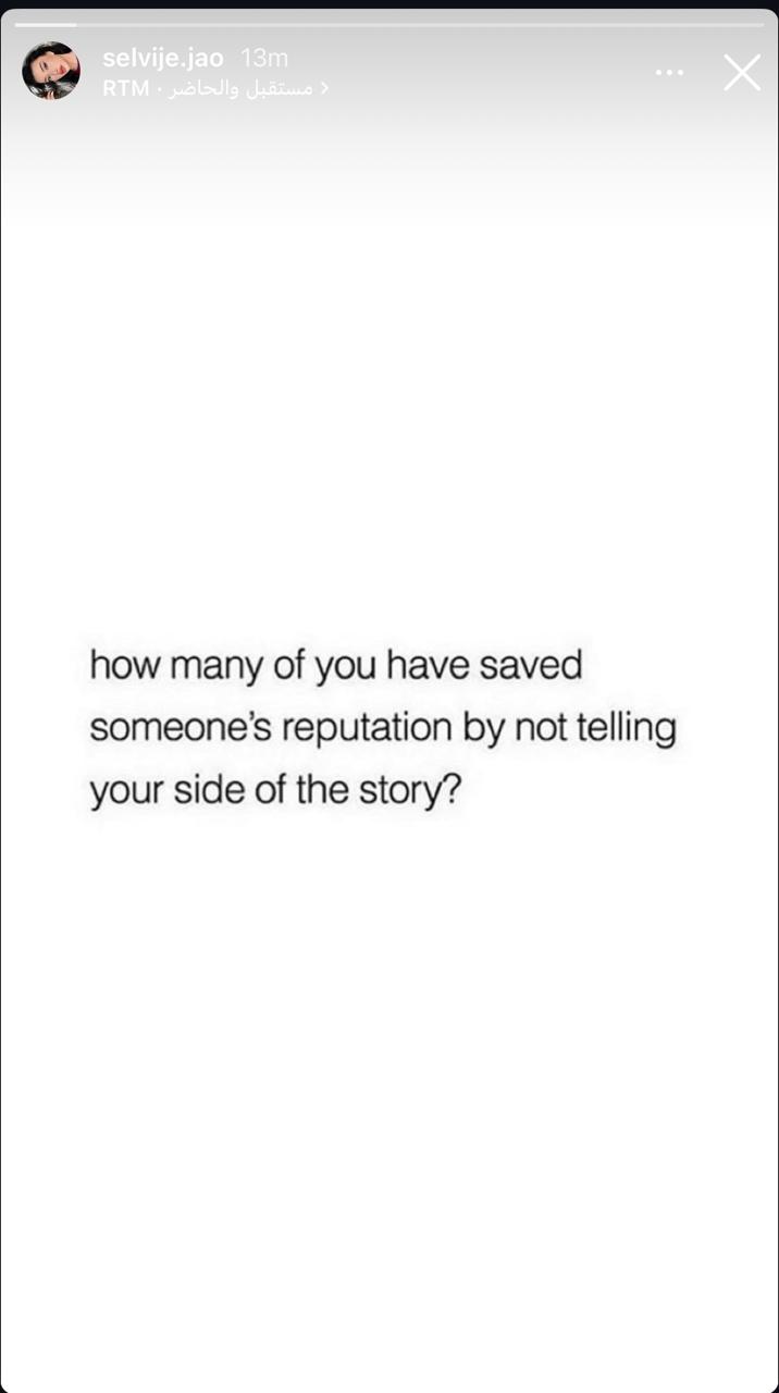 Ky postim u interpretua menjëherë nga ndjekësit si një mesazh i direkt për situatën me Shpatin, duke lënë të kuptohet se Selvija ka shumë më tepër për të thënë, por ka zgjedhur të heshtë për hir të reputacionit të dikujt tjetër – ndoshta pikërisht të partnerit të saj.