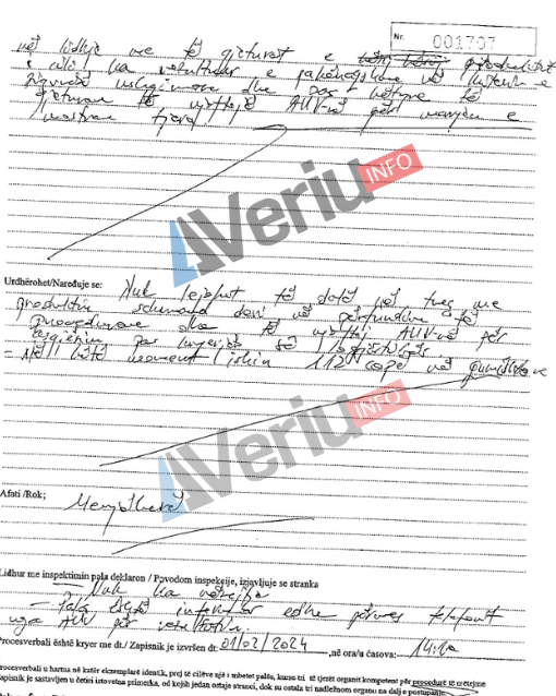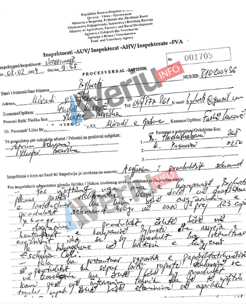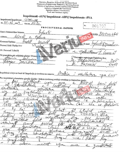 Më poshtë gjeni dokumentet e AUV të siguruara nga Veriu.info për këtë asgjësim produkti në qumështoren ‘Bylmeti’: