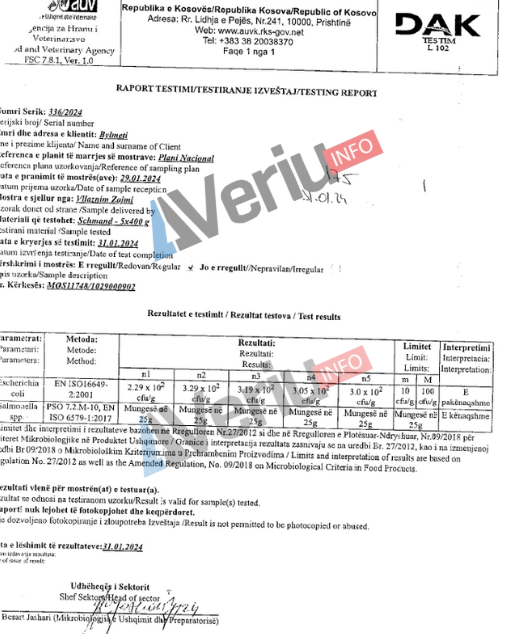 “Bylmeti ka vepruar me përgjegjësi të plotë, në bashkëpunim të ngushtë me Agjencinë e Ushqimit dhe Veterinarisë (AUV), duke respektuar të gjitha protokollet dhe udhëzimet zyrtare. Sasia e produktit “Schmand 400g” që nuk i ka përmbushur kriteret mikrobiologjike nuk ka dalë në treg për konsum, por është asgjësuar menjëherë në prani të inspektorëve të AUV, sipas procedurave standarde”, ka thënë për Veriu.info pronari i ‘Bylmeti – KS’ Sh.P.K., Afrim Berisha.
