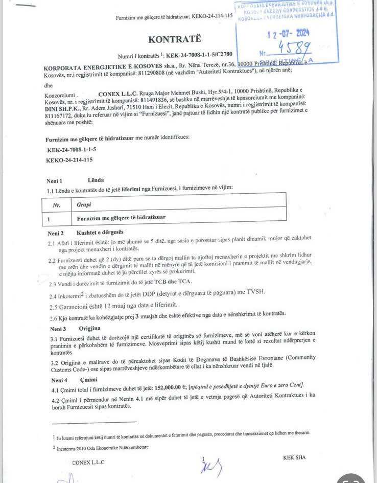 Zyra Ekzekutive e Prokurimit pranë Korporatës Energjetike të Kosovës (KEK sh.a.) më datë 4 shtator 2025 ka shpallur fituese kompaninë GRAMI sh.p.k. në një procedurë të negociuar për furnizim me Gëlqere të Hidratizuar, në vlerë prej 141 mijë euro (me TVSH).