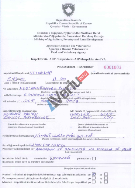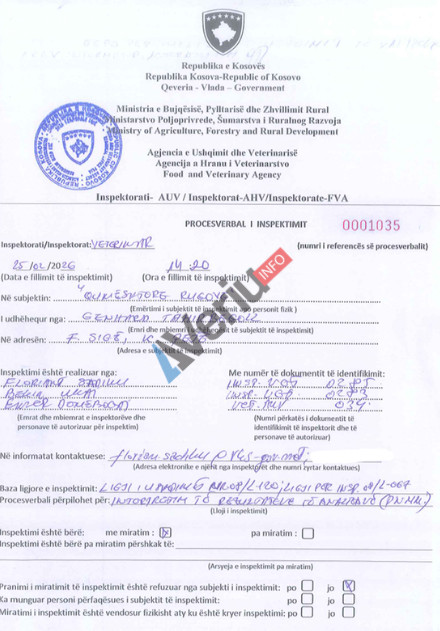 Inspektorët e Agjencisë së Ushqimit dhe Veterinarisë në muajin shkurt të këtij viti sipas planit nacional të inspektimeve, kanë inspektuar Qumështoren Rugove në Sigë të Pejës, e cila është pjesë e kompanisë RUGOVE Sh.P.K., ku kanë marrë mostrat e disa produkteve të qumështit.