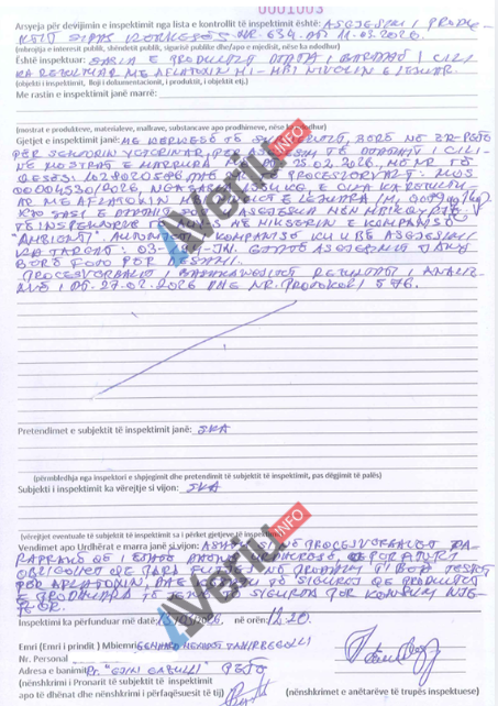 “Nga kjo sasi është marrë sërish mostër për verifikim nga AUV dhe për të njëjtën është lëshuar urdhër që kjo sasi nuk lejohet të plasohet në treg. Rezultati i kësaj mostre të djathit 2 kg ka rezultuar përsëri me prezencë mbi kufijtë e lejuar për parametrin Aflatoxin M1. Me datë 13.03.2026, sipas procesverbalit me nr. protokolli 1003, ashtu siç e kërkon rregullorja dhe legjislacioni në fuqi që mbikëqyret nga AUV, subjekti ynë Rugove ka bërë kërkesë zyrtare pranë AUV për asgjësimin e kësaj sasie dhe të njëjtit kanë marrë pjesë në procesin e asgjësimit”, ka thënë ajo, duke thënë se nuk është hedhur në treg sasi e këtij loti të djathit të kontaminuar me këtë toksinë kancerogjene, por që nuk ka prezantuar dokumentacion që e vërteton këtë pretendim.