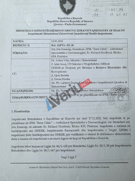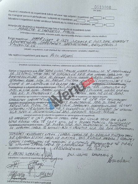 Në raportin e inspektimit të siguruar nga Veriu.info, thuhet që Ambulanca Specialistike e Dermatologjisë “Rene Clinic”, thuhet se inspektorët shëndetësorë kanë realizuar këtë inspektim në bashkëpunim me Drejtorinë e Hetimit të Krimeve Ekonomike, Inspektoratin Farmaceutik dhe Inspektoratin e Tregut.