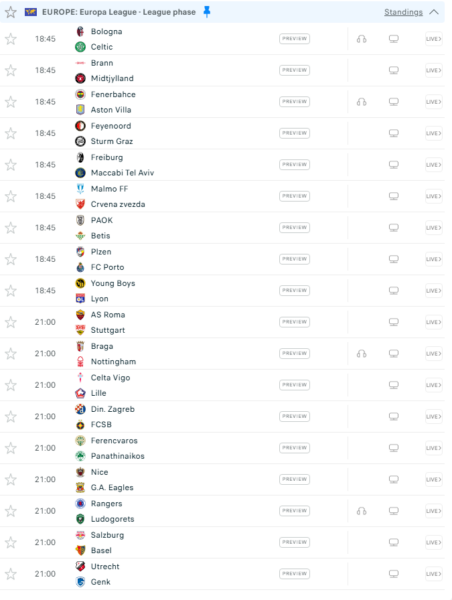 Xhiroja e shtatë e fazës së ligës në Ligën e Europës luhet sot.