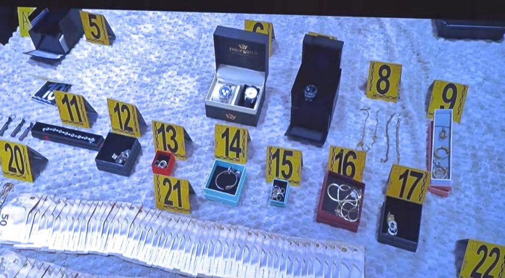 Në konferencën e thirrur nga Prokuroria e Prizrenit janë publikuar edhe disa fotografi nga paratë, stolit e arit e orat e shtrenjta që janë sekuestruar në bastisjen e sotme nëpër shtëpi e apartamente të të lartcekurve.