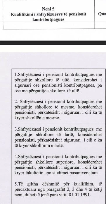“Me këtë aktgjykim, Gjykata Supreme ka shpallur të paligjshëm dhe ka shfuqizuar paragrafin 5 të nenit 5 të Udhëzimit Administrativ Nr. 09/2015 (MPMS), i cili rregullon kategorizimin e shfrytëzuesve të pensionit kontribut-pagues sipas strukturës kualifikuese dhe kohëzgjatjes së pagesës së kontributeve. Gjykata vlerëson se dispozita e kontestuar, e cila kërkonte që dëshmitë për kualifikim arsimor të jenë të fituara para datës 01.01.1991, nuk ka bazë ligjore dhe përbën tejkalim të autorizimit të dhënë me ligj. Sipas arsyetimit të aktgjykimit, ligji përkatës për skemat pensionale nuk e lidhin të drejtën në pension me kohën e fitimit të kualifikimit arsimor, por me pagesën e kontributeve dhe përmbushjen e kushteve ligjore. Po ashtu, Gjykata Supreme vlerëson se kufizimi i vendosur është arbitrar, pa ndonjë qëllim të qartë legjitim dhe joproporcional, pasi përjashton një kategori të tërë pensionistësh kontribut-pagues që kanë përmbushur kushtet ligjore, vetëm për shkak të kohës së fitimit të kualifikimit të tyre arsimor”, thuhet në njoftimin e Gjykatës.