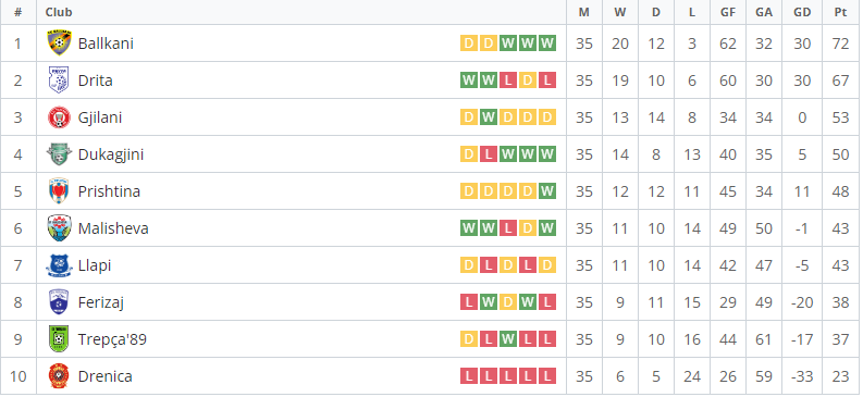 Ndërkaq, për pozitën e katërt deri në fund do të garojnë Dukagjini dhe Prishtina. Kjo pozitë mund t’i hyjë në punë njerës skuadër, për të siguruar daljen në Evropë.