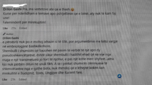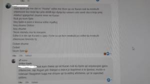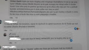 Hoxhë Drilon Gashi ka pranuar komente të shumta nga ndjekësit e tij, të cilët të zemëruar ia janë vërsulur pas një deklarate që ka dhënë në lidhje me Kuranin.