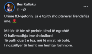 “Urime 83-vjetorin, Ija e tgjith shqiptareve! Trendafilja ime. Më lër të bie në prehrin tënd të ngrohtë