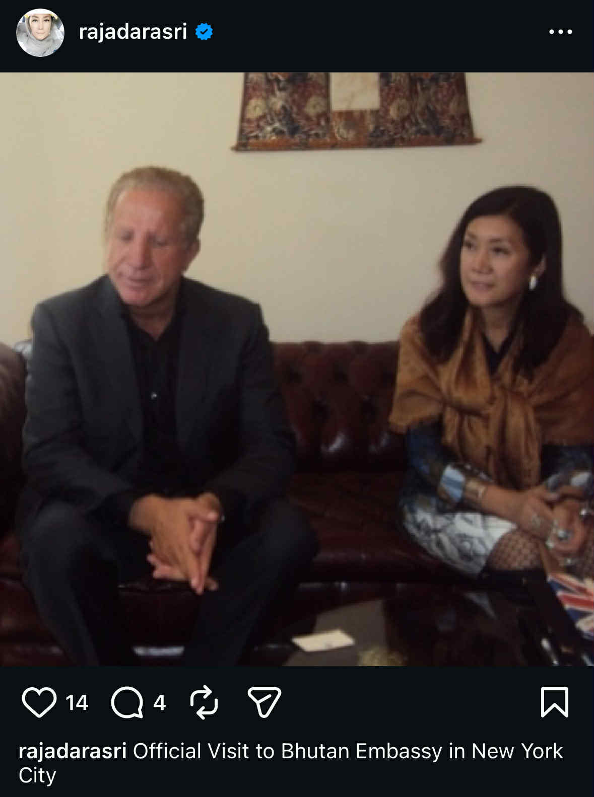 Në takim prezente ishte edhe Mom Luang Rajadarasri, dëshmon fotografia në të cilën ata shfaqen ngjitur njëri-tjetrit brenda takimit me përfaqësuesin diplomatik të Butanit në Nju Jork.