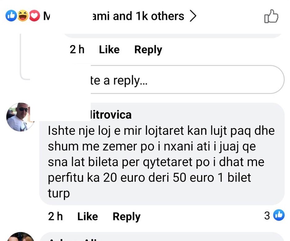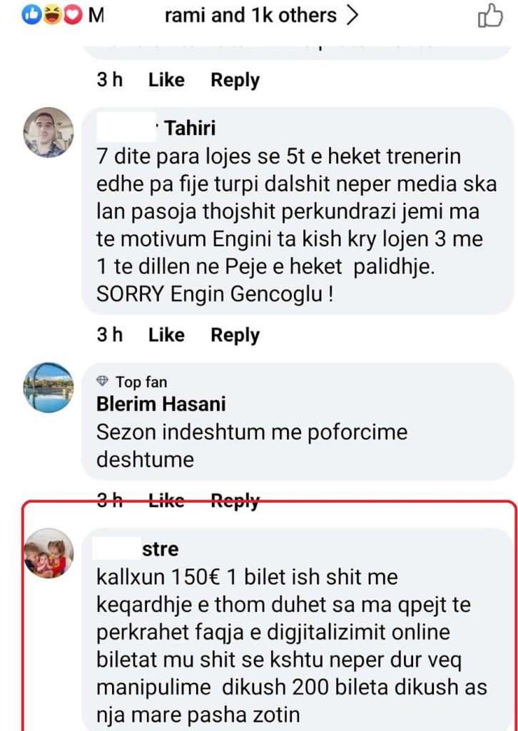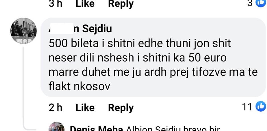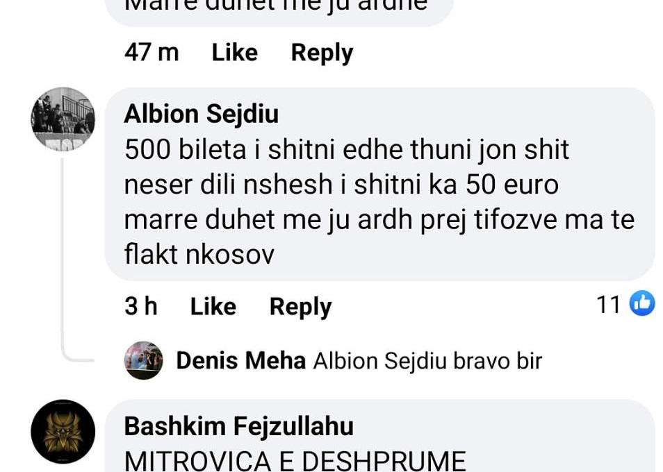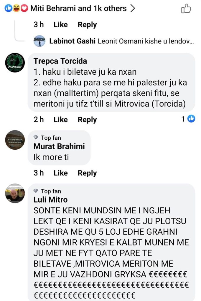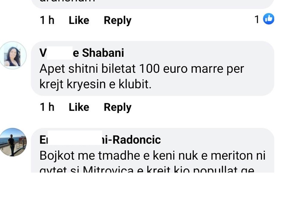 “500 bileta i shitni edhe thoni janë shit, të nesërmen dilni në shesh i shitni kah 50 euro, marre duhet me ju ardhë prej tifozëve ma të flaktë në Kosovë” – ishte njëri nga qindra komentet në adresë të kryesisë së klubit Trepça.