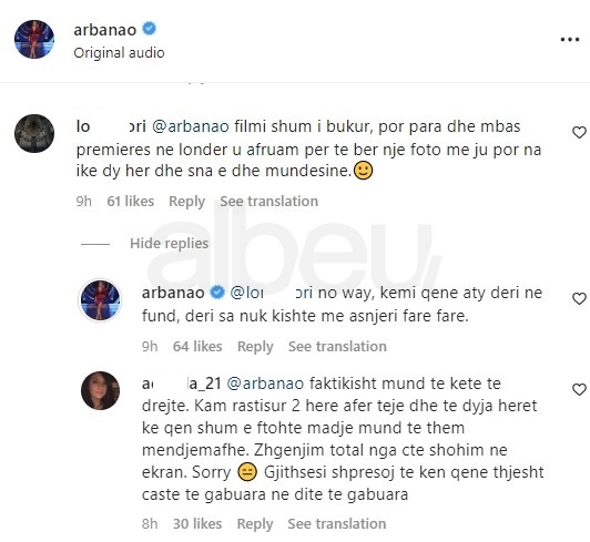 Por Arbana e ka mohuar menjëherë duke thënë se kanë qenë aty deri në fund.