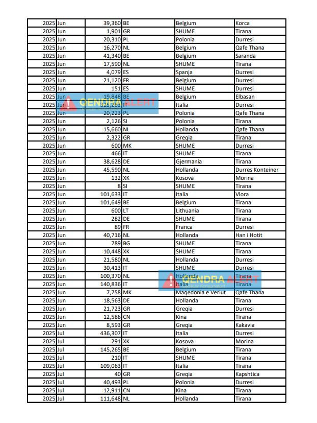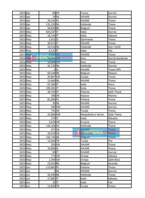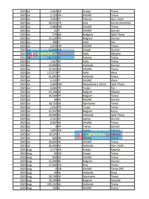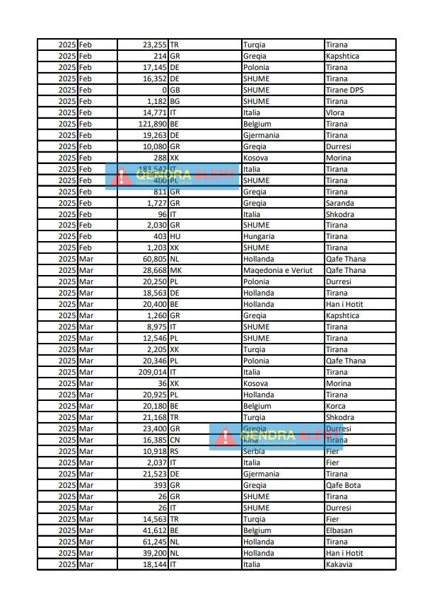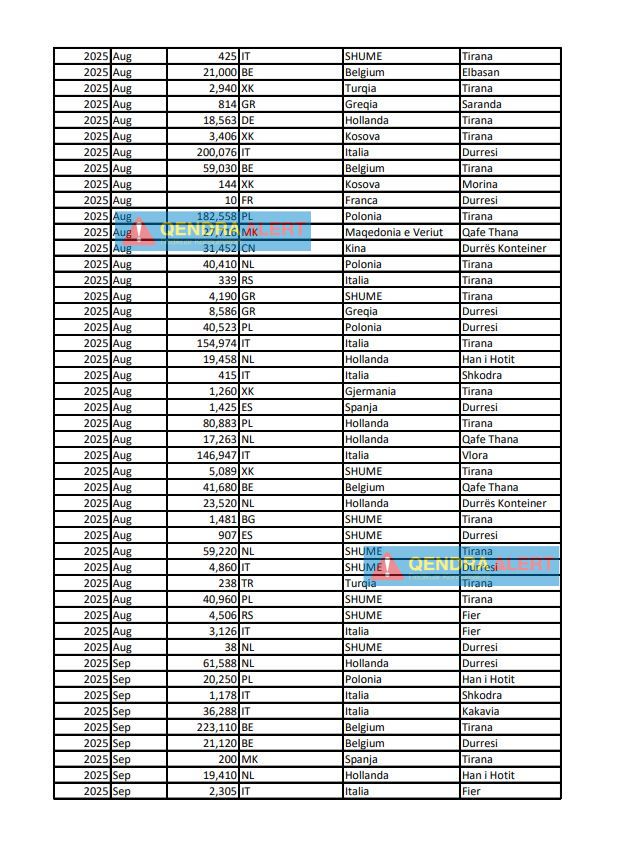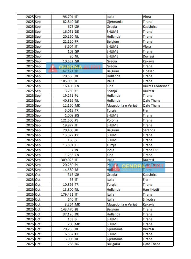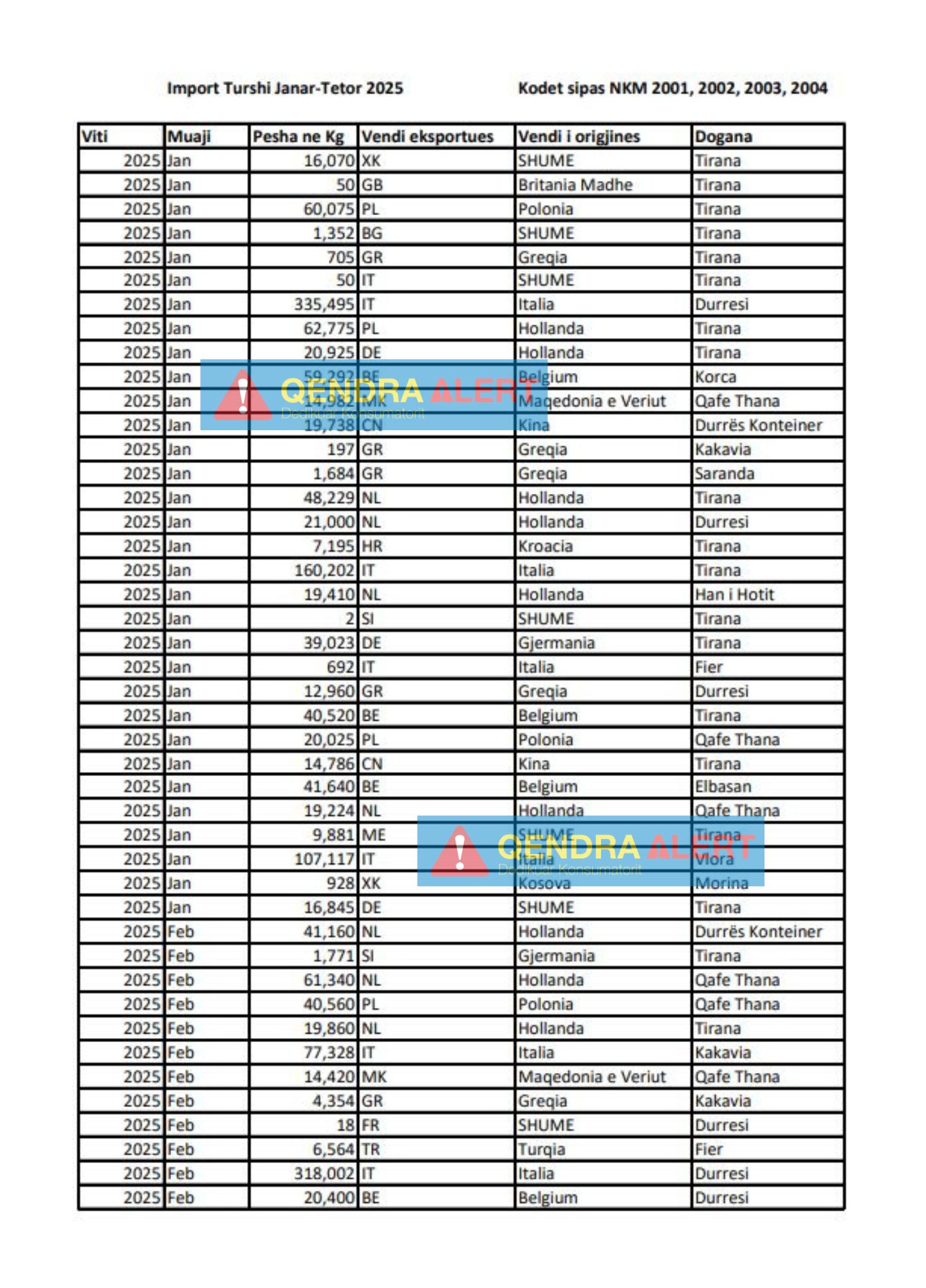 Në listën shumëfaqeshe që dërguara nga Drejtoria e Përgjithshme e Doganave për importin e turshive, bien në sy dhe ngarkesat e ardhura nga Kina, me dhjetra ngarkesa, po ashtu nga Turqia e vend tjera të BE dhe jasbtë BE. Ndërkohë, ne i kishim kërkuar Doganave që, përveç shtetit nga është importuar produkti turshi, të saktësohet dhe origjina e tij. Kjo, pasi, nëse një ngarkesë është importuar nga Italia, Kosova, apo diku tjetër, jodetyrimisht ato janë të prodhuara në atë vend. Në këtë mënyrë, në tabelat e doganave, përbri shtetit nga janë importuar turshitë, gjendet fjala SHUMË, që do të thotë se, produkti i importuar nga ai shtet, ka origjinë nga vende/shtete të tjera. Për shembull, nëse pas IT, XS (Kosova), Maqedonia e Veriut etj gjendet fjala SHUMË, do të thotë që turshitë e kanë origjinën nga shumë shtete të tjera.