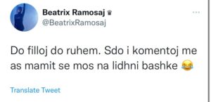 “Do filloj do ruhem. S’do i komentoj më as mamit se mos na lidhni bashkë”, ka shkruar Beatrix.