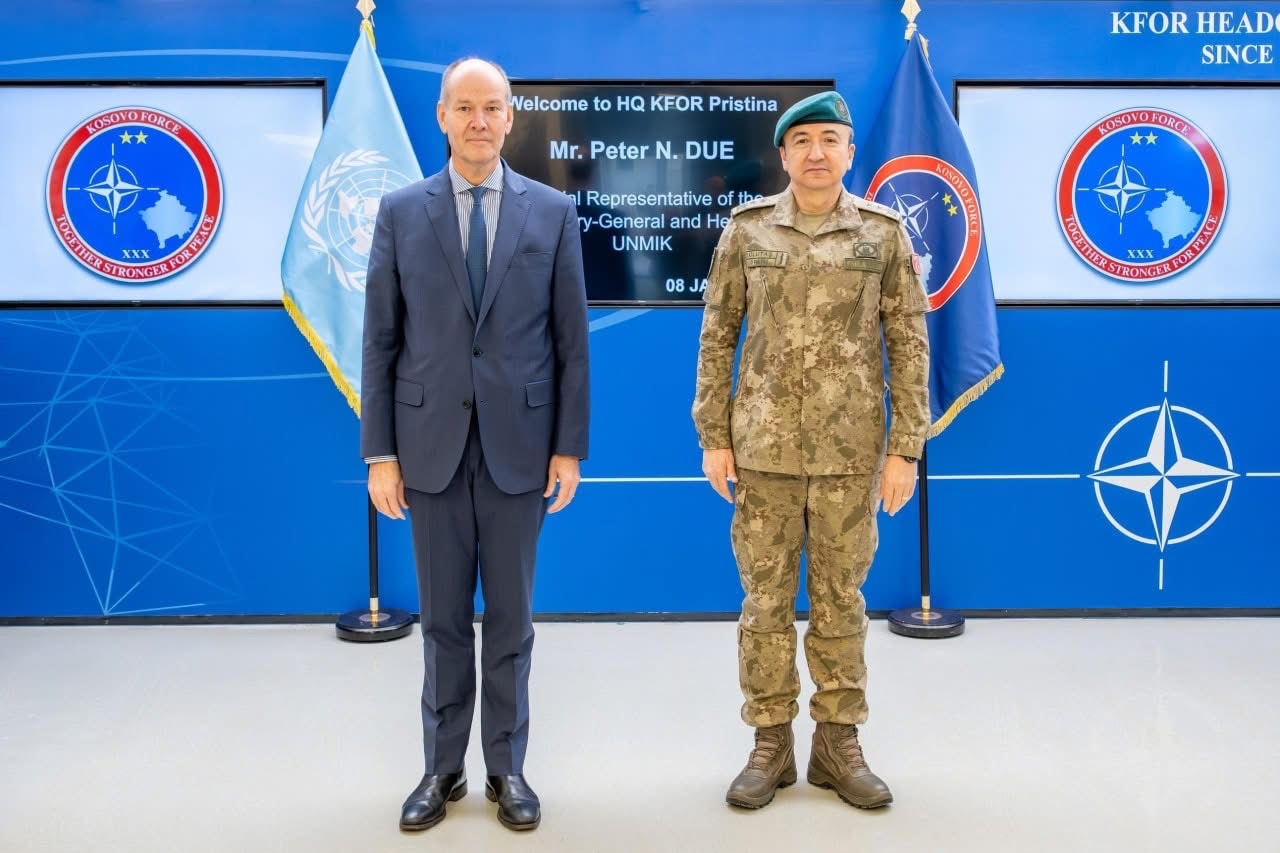 Komandanti i misionit KFOR të udhëhequr nga NATO, Gjeneral Major Özkan Ulutaş, priti Përfaqësuesin Special të Sekretarit të Përgjithshëm dhe Shefin e UNMIK-ut, z. Peter N. Due, në Selinë e KFOR-it në Kampin “Film City”, në Prishtinë.
