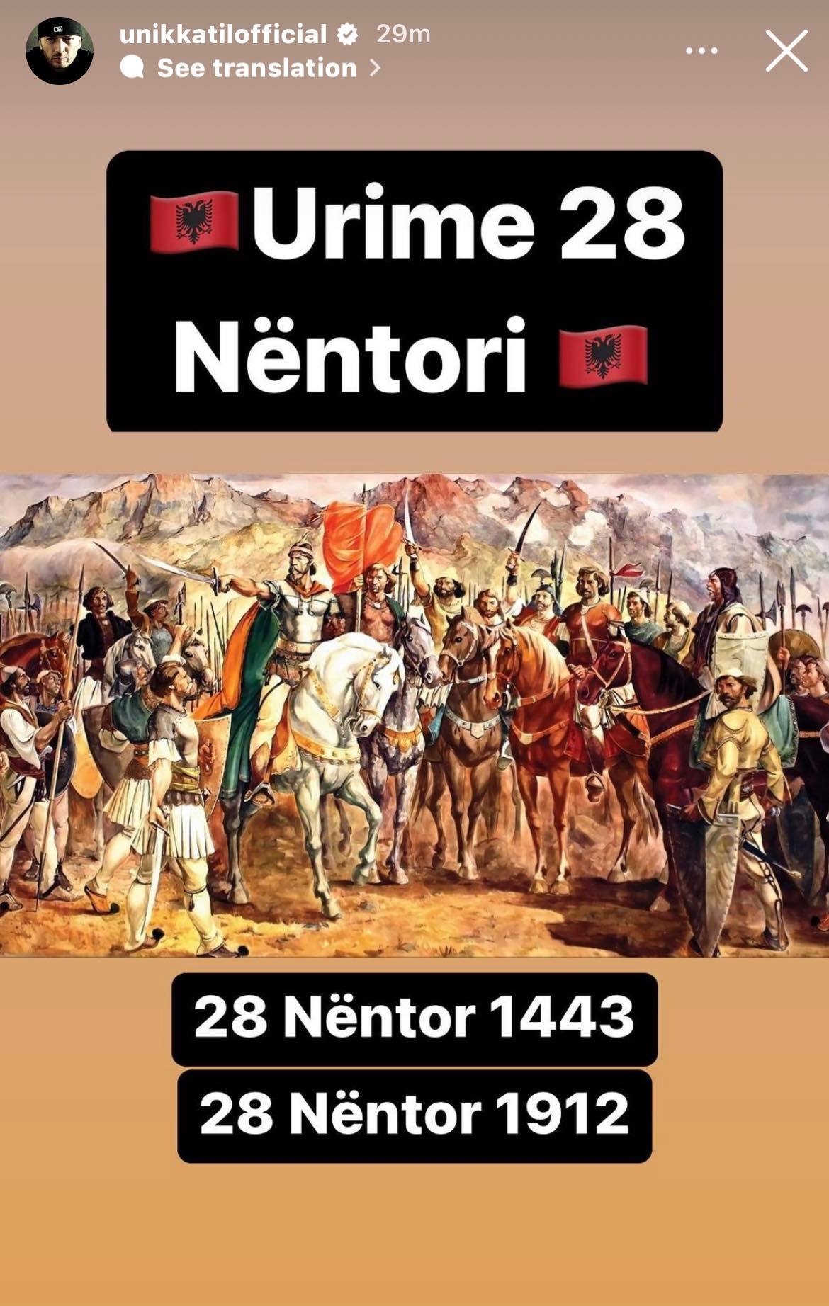 “Urime 28 Nëntori. 28 Nëntor 1443, 28 Nëntor 1912”, ka shkruar ai.