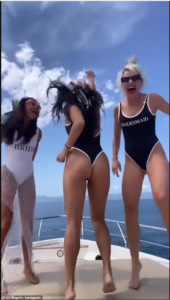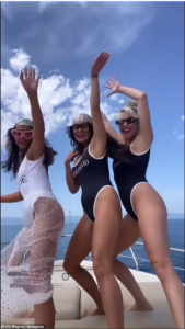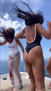 Vanessa Hudgens ka treguar të pasmet e saj dhe trupin seksi në bikine të zeza për “shoqëruese të nuseve” teksa ka vallëzuar në ahengun e beqarisë të Sarah Hylan në një varkë në Meksikë.