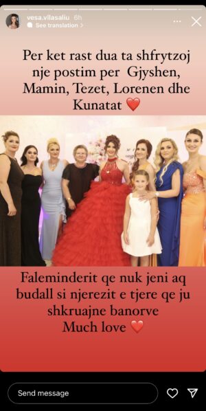 Ndërkohë Vesa pas mesazheve ka publikuar një foto me familjen e saj teksa krahas ka shkruar: “Faleminderit që nuk jeni aq budallenj si njerëzit e tjerë që ju shkruajnë banorëve.”
