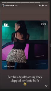 “K*rva duke ëndërruar që më ka goditur me shuplakë, bo*a bo*a”, shkroi krahas imazhit ku shihet një pjesë nga kënga e saj e fundit.