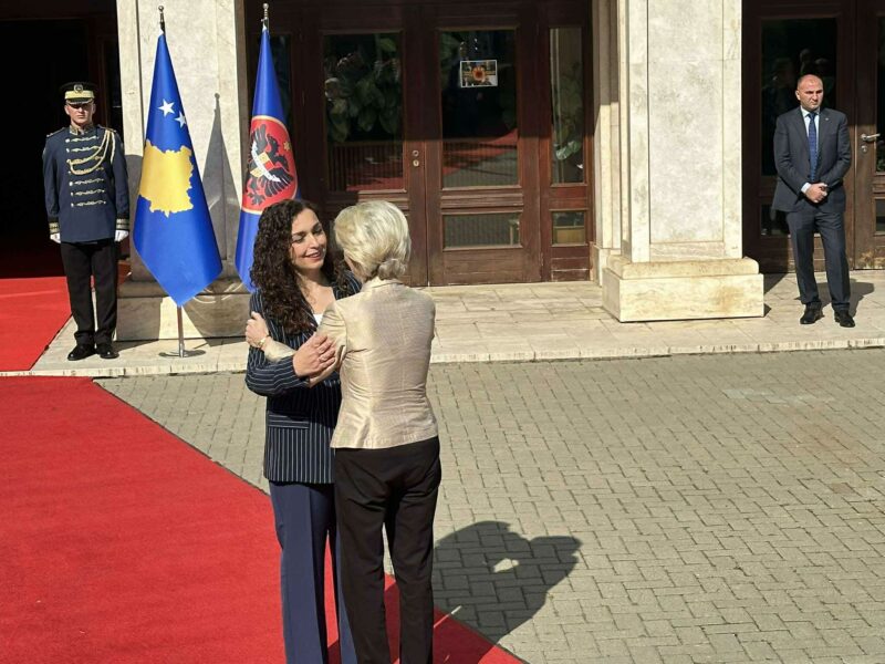 Von der Leyen pas Osmanit do të takohet me kryeministrin në detyrë, Albin Kurti, të cilin do ta takojë në sallën e Kuvendit dhe jo në zyrën e tij pas vendimit të BE-së që takimet me të të mos mbahen në objektin qeveritar deri në formimin e një qeverie me mandat të plotë.