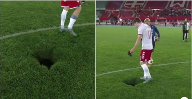 Lojtarët danezë dukeshin shumë të intriguar dhe Skov Olsen madje e futi këmbën aty për të parë se sa e thellë ishte.