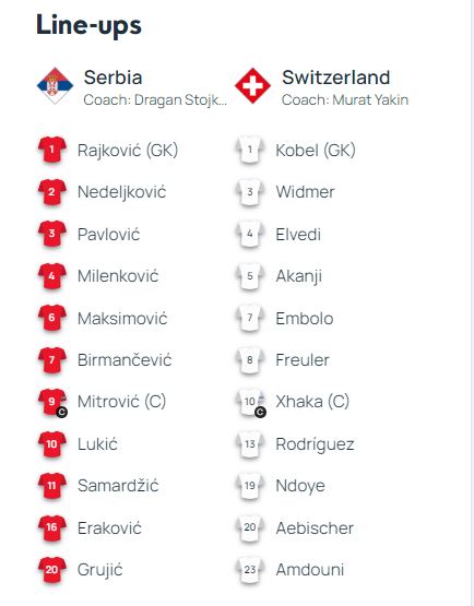 Janë publikuar formacionet zyrtare të ndeshjes mes Serbisë dhe Zvicrës, e vlefshme për UEFA Nations League.