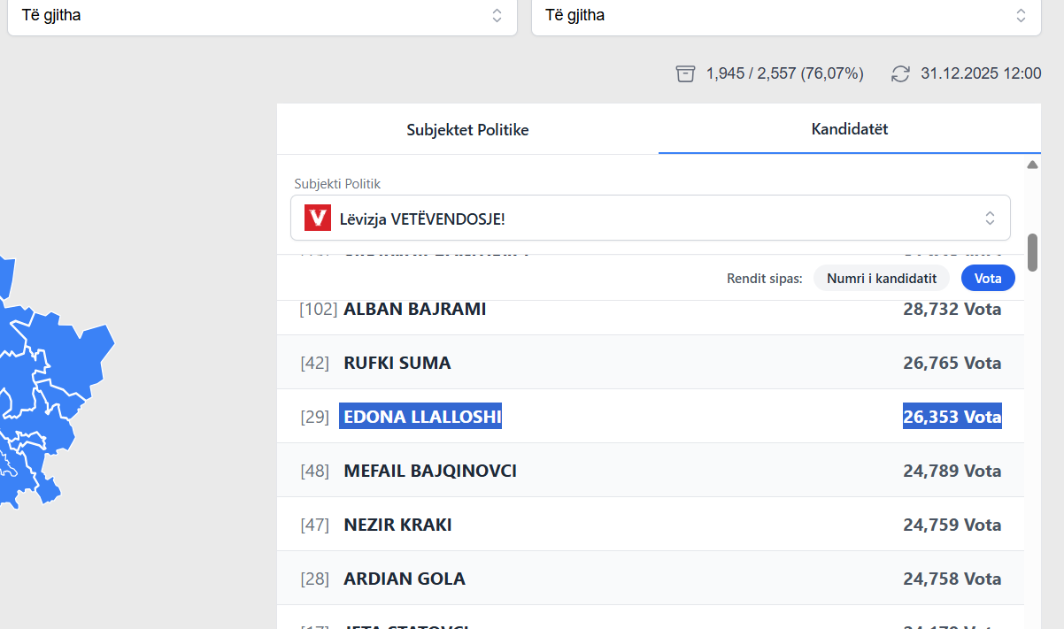 Ylli i hitit ‘Prej veriut sot u ula’, Edona Llalloshi, është një nga gratë më të votuara në Lëvizjen Vetëvendosje, sipas statistikave të deritashme të publikuara në faqen zyrtare të KQZ-së.