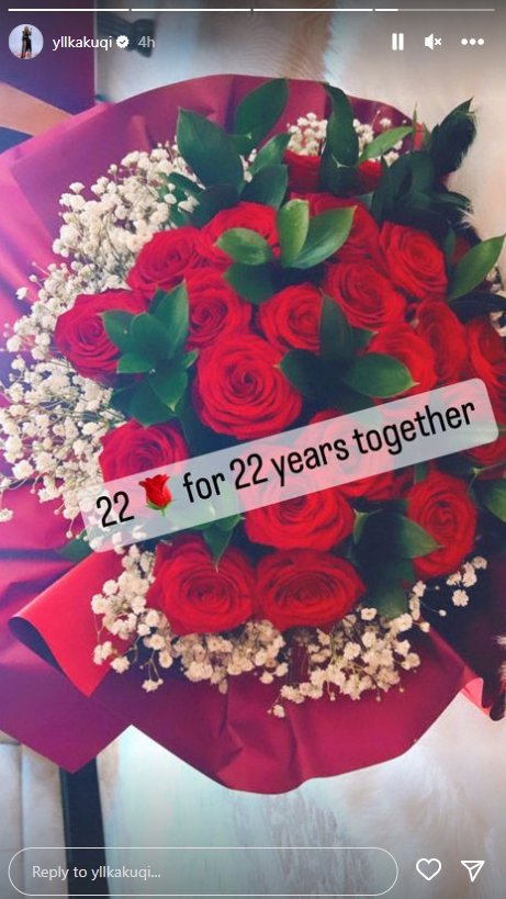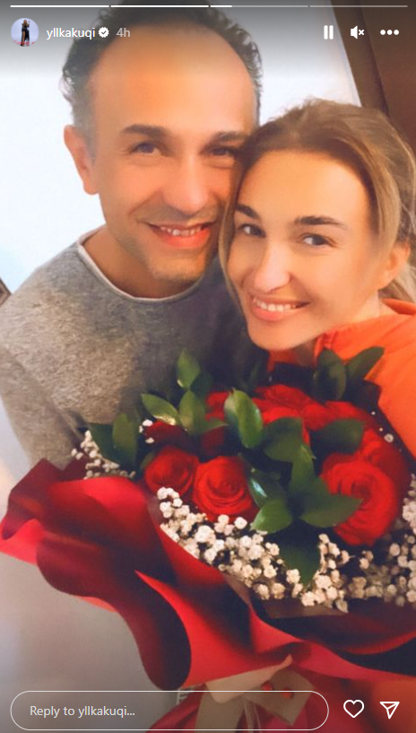 Kjo është bërë e ditur përmes një postimi që kanë publikuar në InstaStory, ku artistja shfaq një buqetë me lule që ka pranuar nga partneri.